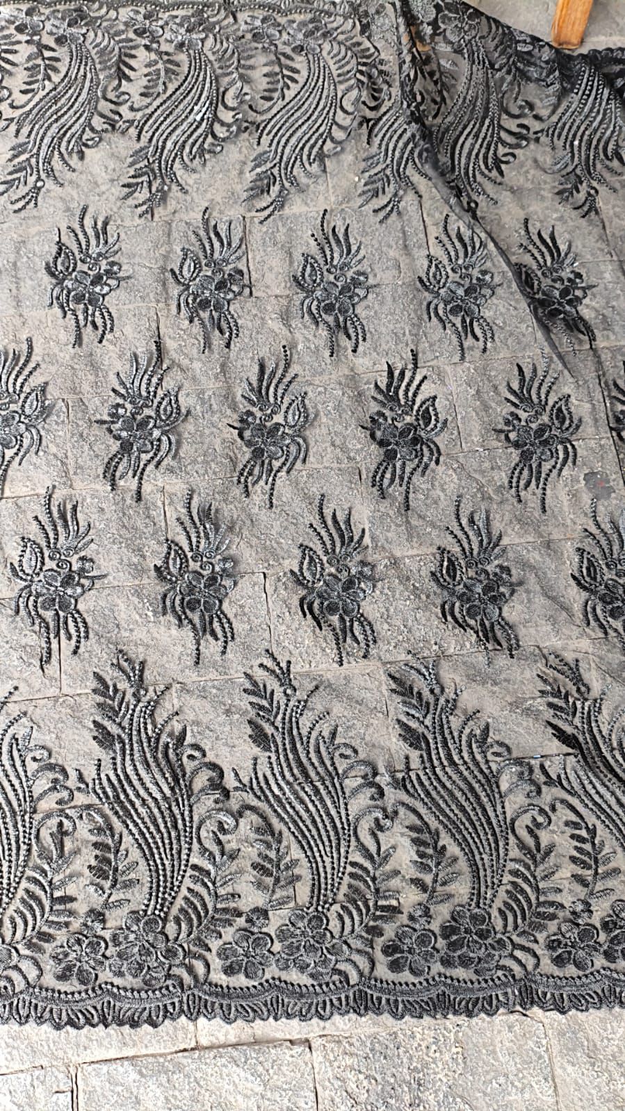 Tule Preto Bordado