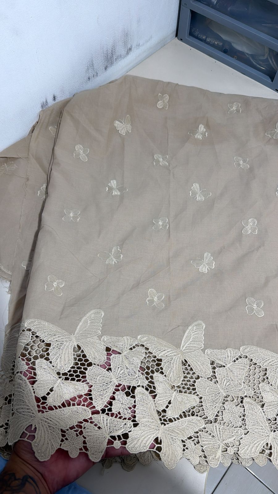 Retalho - Lesse Bege Barrado Borboleta
