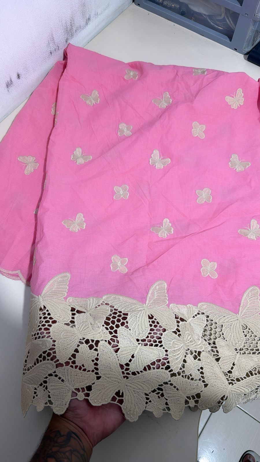 Retalho - Lesse Rosa Barrado Borboleta